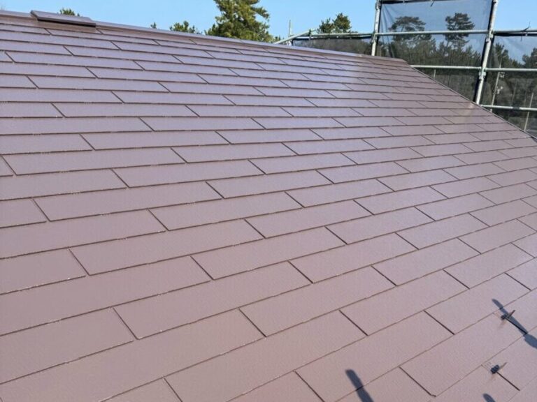 旧塗膜や屋根材との密着性が高く、塗膜の剥がれを抑制。なめらかな仕上がりで、屋根全体に統一感とツヤ感を与えます。