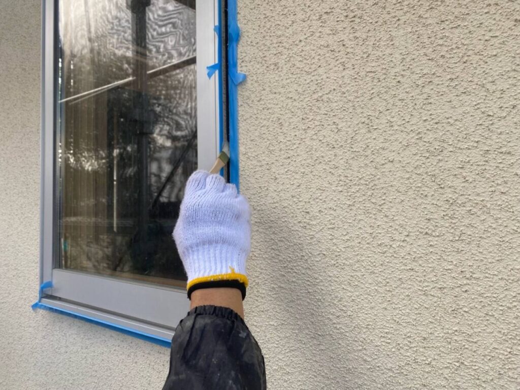 刷毛を使用し、プライマーを塗布していきます。プライマーを塗布することで、シーリング材の密着力を高めます。