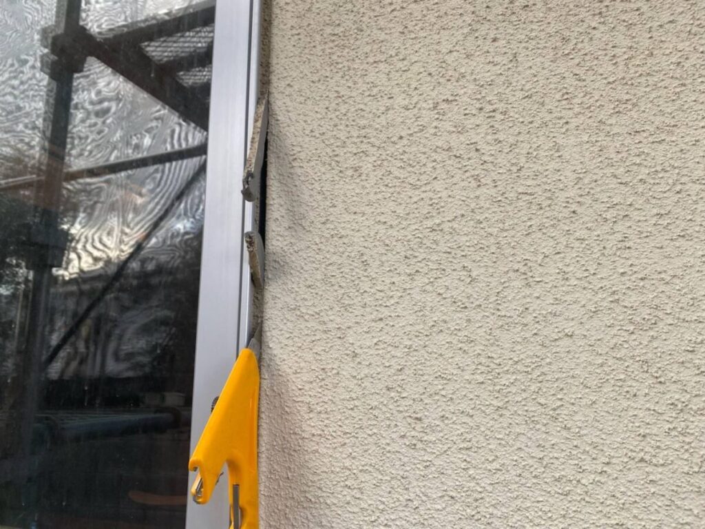 劣化したシーリングを撤去していきます。古いシーリングを取り除くことで、新しいシーリングが密着し、耐久性の高い仕上がりになります。