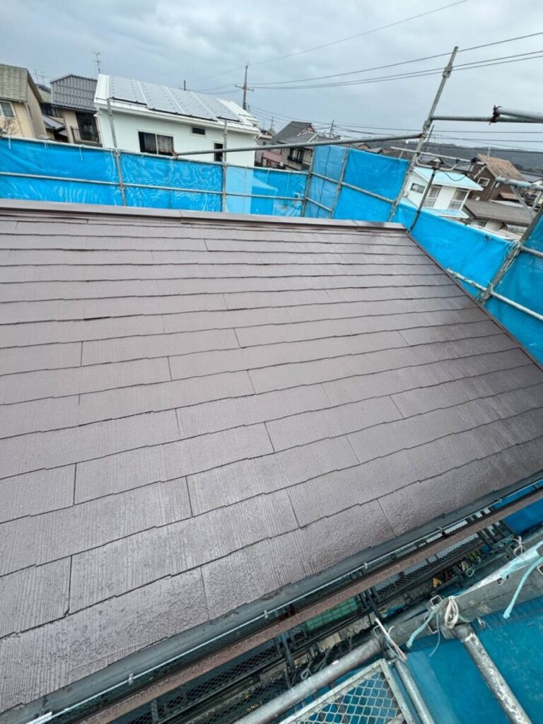 屋根の塗装は下塗り、中塗り、上塗りの三度塗りで仕上げます。そうすることで耐久性がぐんと上がり、仕上がりも美しくなります。