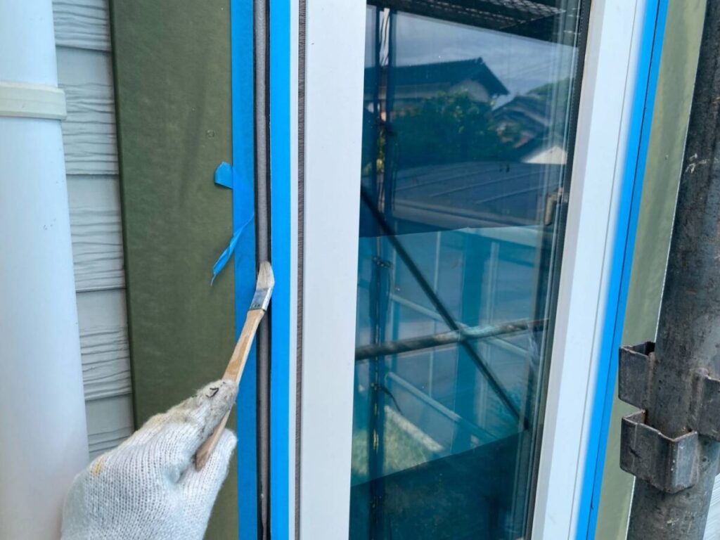 刷毛を使用し、プライマーを塗布していきます。プライマーを塗布することで、シーリング材の密着力を高めます。