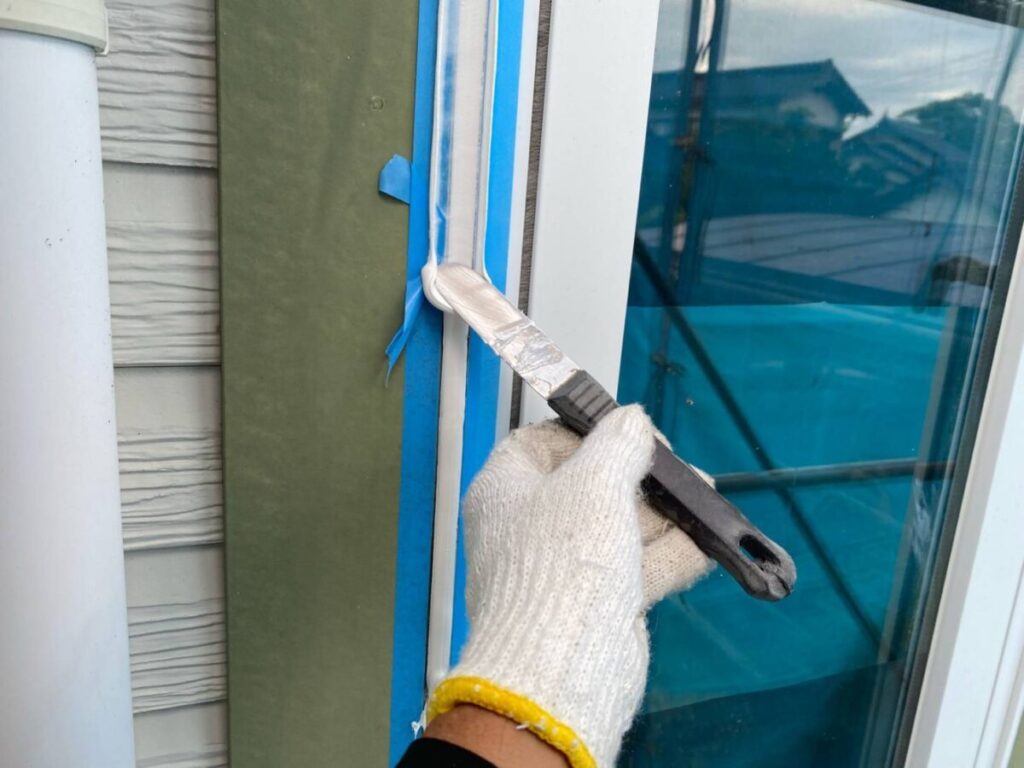 劣化したシーリングを撤去していきます。古いシーリングを取り除くことで、新しいシーリングが密着し、耐久性の高い仕上がりになります。