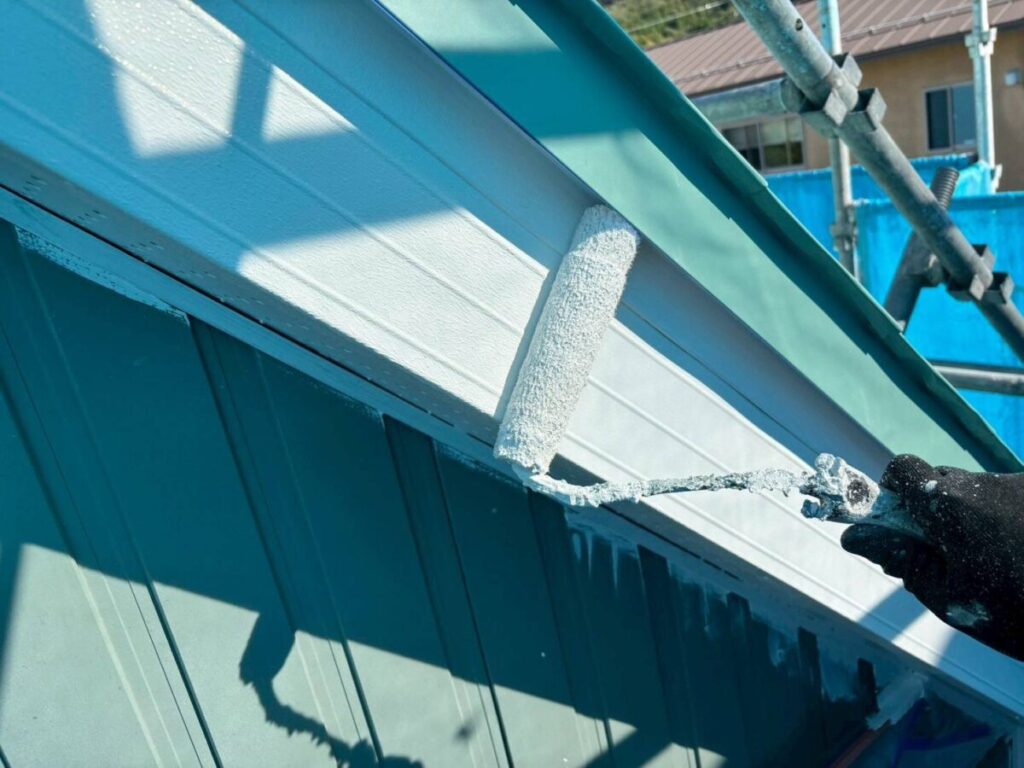 軒天や雨樋などの塗装を行います。付帯部など細かい部分まで塗装してあげることで、出来上がったときに塗装していない部分が悪目立ちするのを防ぐことができます。